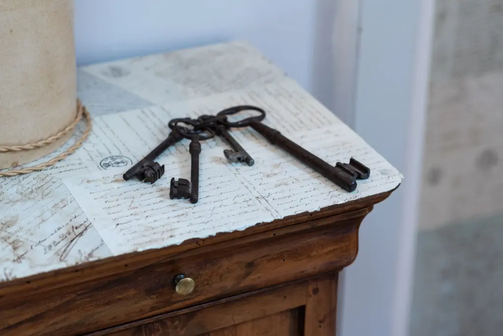 La Chambre des Écritures will delight lovers of romantic and unusual stays, with its original and authentic decor: one of the walls of the room is covered with old letters from the 19th century! This 2-person room features a double bed (180cm x 200cm), a fireplace, a desk, 19th-century oak parquet flooring and a private bathroom with toilet, sink and shower.